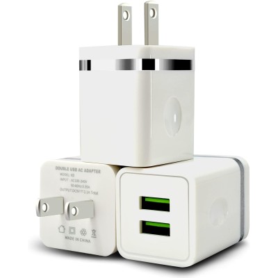 PEKYOK 3-Pack 2.1A/5V Dual Port USB Wall Charger Compatible with iPhone, Samsung, Moto, Kindle, Android Phone